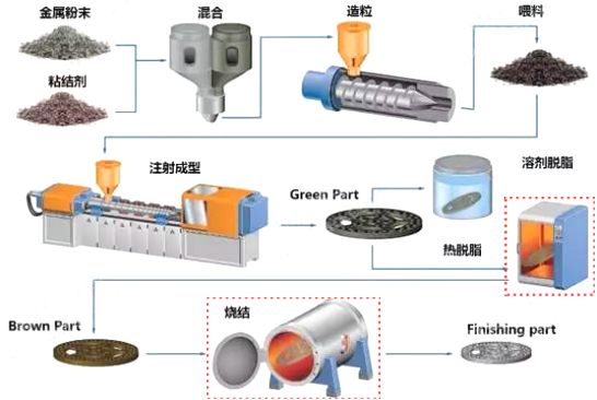 MIM工藝主要包括產品設計、模具設計、質量檢測、混合、成型、脫脂、燒結、二次加工等8個重要環(huán)節(jié),我公司可根據(jù)客戶產品及工藝要求,定制脫脂和燒結設備,且可整合一起,提供真空脫脂燒結一體化設備。
