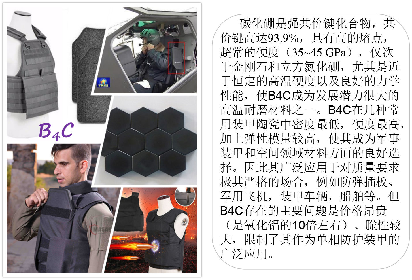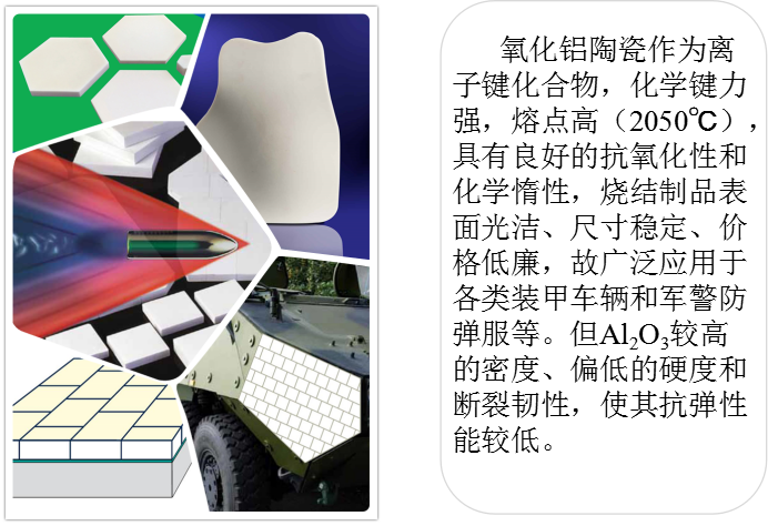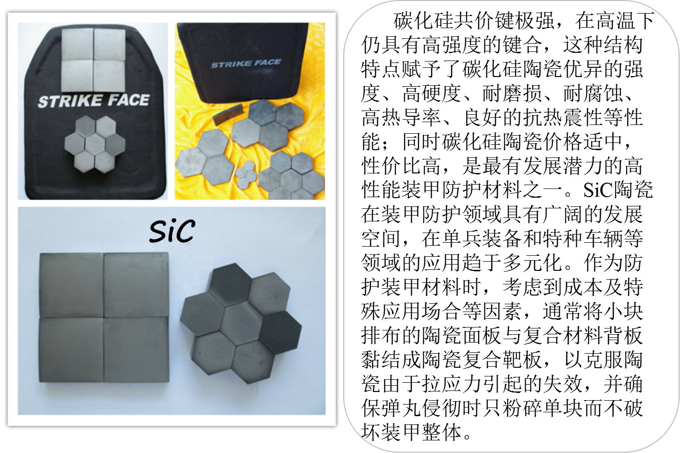 陶瓷材料擁有許多極具吸引力的性能,包括高比剛度、高比強度和在許多環境下的化學惰性。同時,因其相對于金屬的低密度、高硬度和高抗壓強度,使其在裝甲系統上的應用十分具有吸引力,己成為一種廣泛應用于防彈衣、車輛和飛機等裝備的防護裝甲。