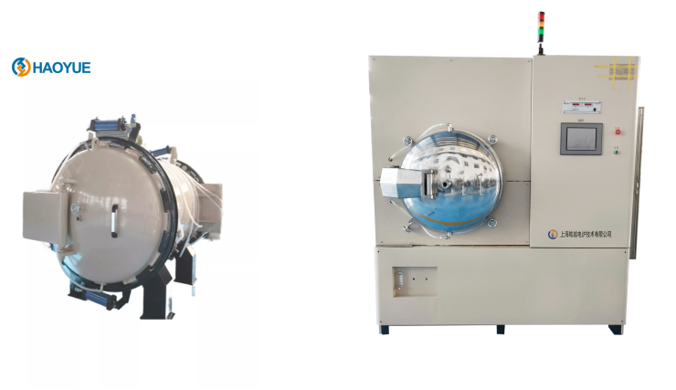 上海皓越自主研發的真空燒結爐(左)和真空熱壓爐(右)
