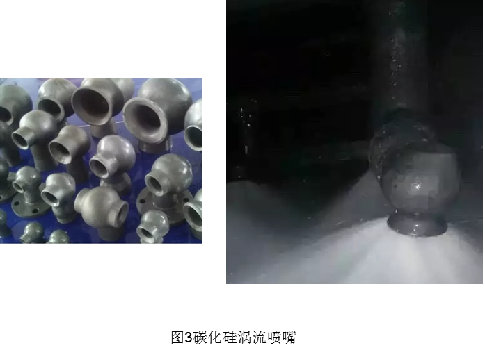 反應燒結碳化硅脫硫噴嘴是火力發電廠、大型鍋爐、脫硫除塵成套裝置的關鍵部件,碳化硅脫硫噴嘴的國產化已代替進口產品,填補了國內空白,該產品具有高強度、高硬度、抗強烈腐蝕、劇烈磨損、耐高溫等優良性能,在惡劣條件下有超常使用壽命,常用種類以螺旋噴嘴和渦流噴嘴為主。
