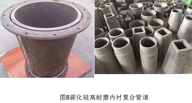 碳化硅耐磨內襯:反應燒結碳化硅耐磨襯體具有較高的耐化學腐蝕性能,莫氏硬度達9.6左右,硬度僅次于金剛石具有高耐磨性,耐高溫且自潤滑性能較好、其摩擦系數低、重量輕而強度高使用壽命是一般耐磨材料的數倍,現已廣泛應用于旋流器內襯,礦山,冶金電力等耐磨耐腐蝕管件內襯。