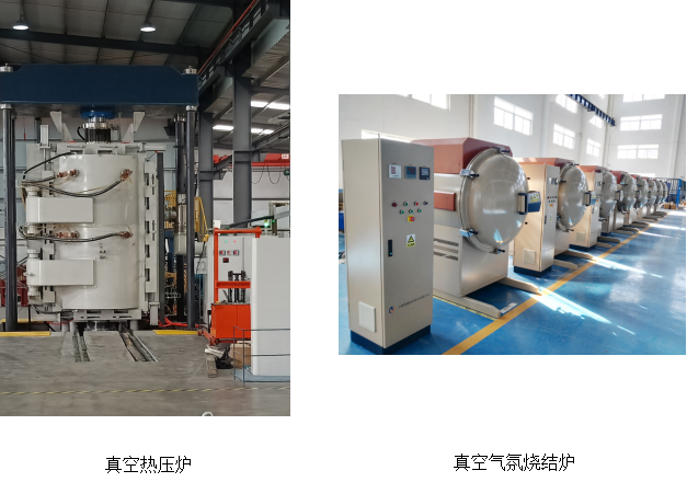 皓越科技研發的真空氣氛燒結爐(如下圖右圖所示),可以滿足碳化硅材料在保護氣氛中進行燒結,如下左圖所示為真空熱壓爐,可在壓力條件下對碳化硅材料進行燒結,具有致密性好,物理性能優異等優點。
