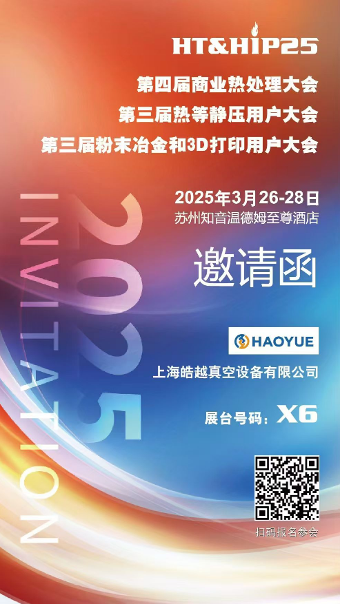 在科技飛速發展的當下,工業制造領域的每一次技術革新都備受矚目。作為真空高溫熱處理設備行業的企業,皓越科技始終秉持著創新驅動、品質至上的理念,不斷推動行業的發展與進步。如今,備受期待的第四屆商業熱處理大會、第三屆熱等靜壓大會以及第三屆粉末冶金用戶大會即將盛大開幕,皓越科技也將盛裝出席,與來自世界各地的行業精英齊聚一堂,共襄盛舉。